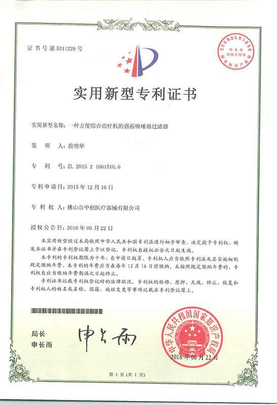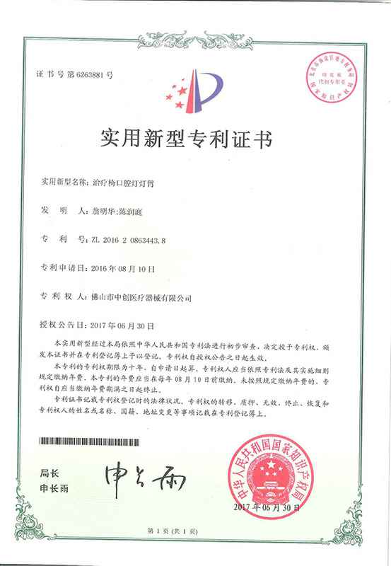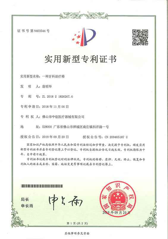 公司已累计获发明专利6项,实用新型专利30余项,外观专利100余项,专利保有量居牙科治疗机行业前列;